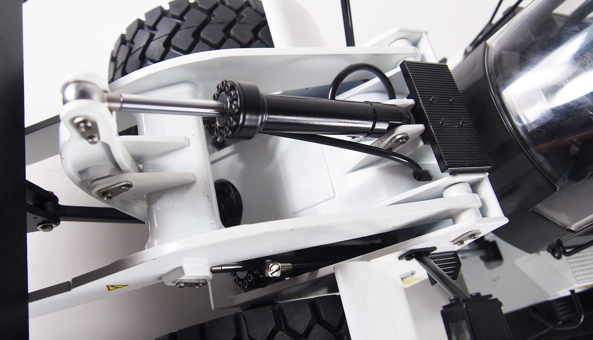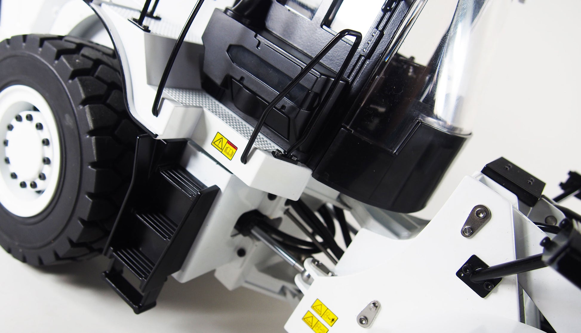 Hydraulik-Scale-Nachbau eines bekannten Radladers In Vollmetall And weißer-Lackierung, der With sperrbaren Differentialen, 2-Gang-Schaltgetriebe And Pendelachse For On außergewöhnliches Fahrerlebnis sorgt. Diese ca. 11kg schwere Baumaschine im Scale 1:16 lässt sich dank seiner Vollgummireifen On nahezu jedem Untergrund bewegen. Die Kraft des Auslegers, des Brushless-Antriebes And der hydraulikgesteuerten Schaufel sind im Vergleich To seinem Eigengewicht überdurchschnittlich Strong And ermöglichen On problemloses Arbeiten auch With schwerem Material wie Erde, Kies Or anderem Schüttgut.