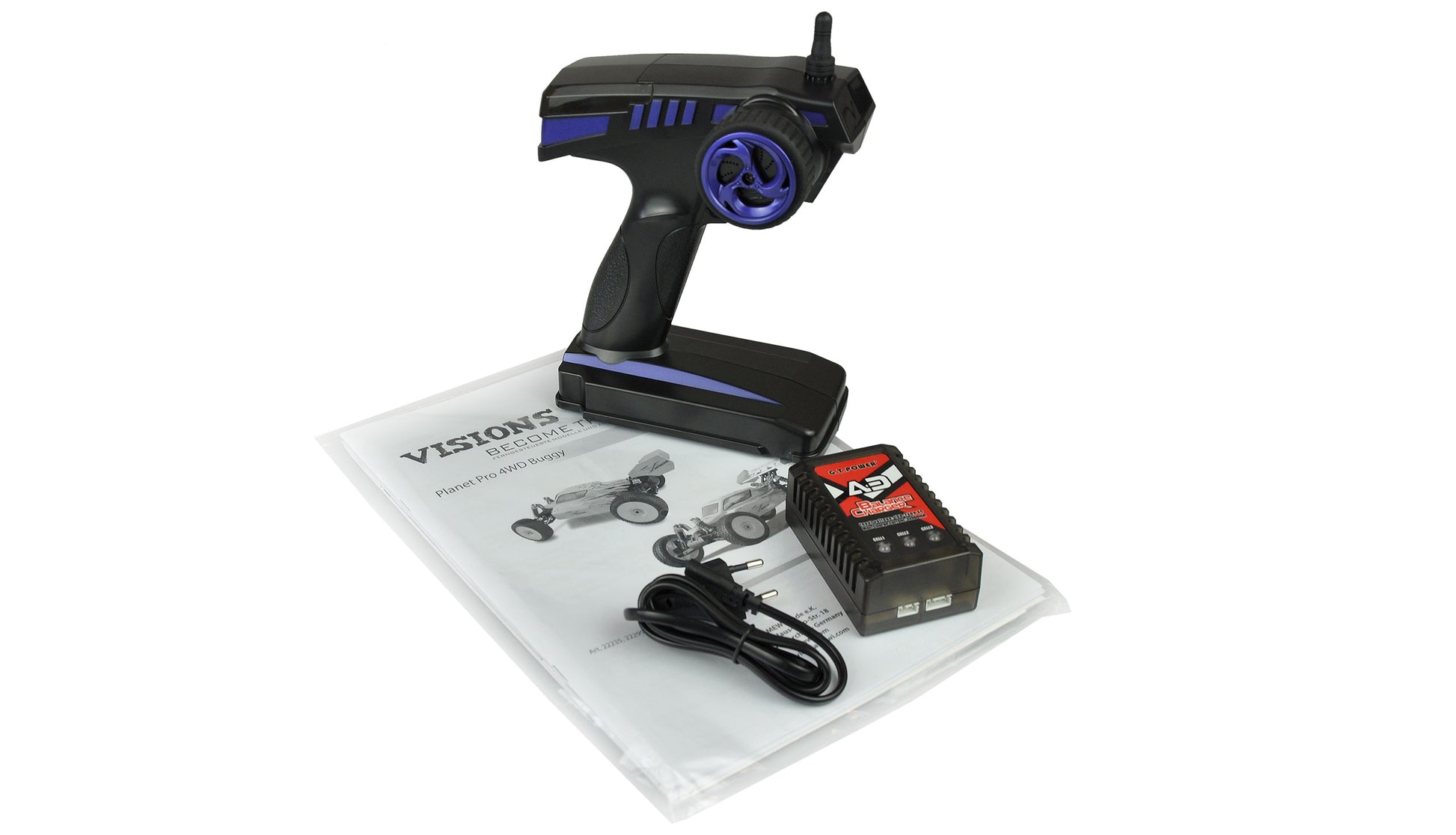 Planet Pro Buggy, 1:8, 4WD (Allrad), 2,4 GHz,RTR Dual LiPo Brushless Power vom Allerfeinsten. Dieser Buggy ist Fast. Richtig Fast. Der Planet pro Buggy wird durch einen Brushless Motor In Kombination With einem 80A ESC befeuert, On denen jeweils On Lüfter zur Kühlung sitzt. Das sorgt For eine lange Haltbarkeit dieser sensiblen Komponenten die ihre Power Out zwei fetten 3900mAh LiPo 2S Akkus bekommen. Fahrzeiten From knapp 30 min. sind With dieser Combo problemlos möglich. Der Allradantrieb, der große Radstand,die hochwertigen Lenkservos And die Perfect On das Car abgestimmte Tires lassen den Buggy spursicher And radikal durch das Gelände schießen.Das Motorritzel And auch das Main Gear sind Out Steel. Das Chassis Out Aluminum And der hochgezogene Flankenschutz geben zusätzliche Sicherheit bei wilden And harten Ausritten. Die Pistolen Remote Control With störungssicherer 2,4 GHz Technologie liegt gut ausbalanciert In der Hand And lässt sich feinfühlig bedienen. Die Elektronik ist spritzwassergeschützt, die Alu-Oil Pressure Shock Absorbers sind wie das Fahrwerk einstellbar. Das Chassis ist extrem Robust, die Karosse besteht Out schlagzähem Polycarbonat.