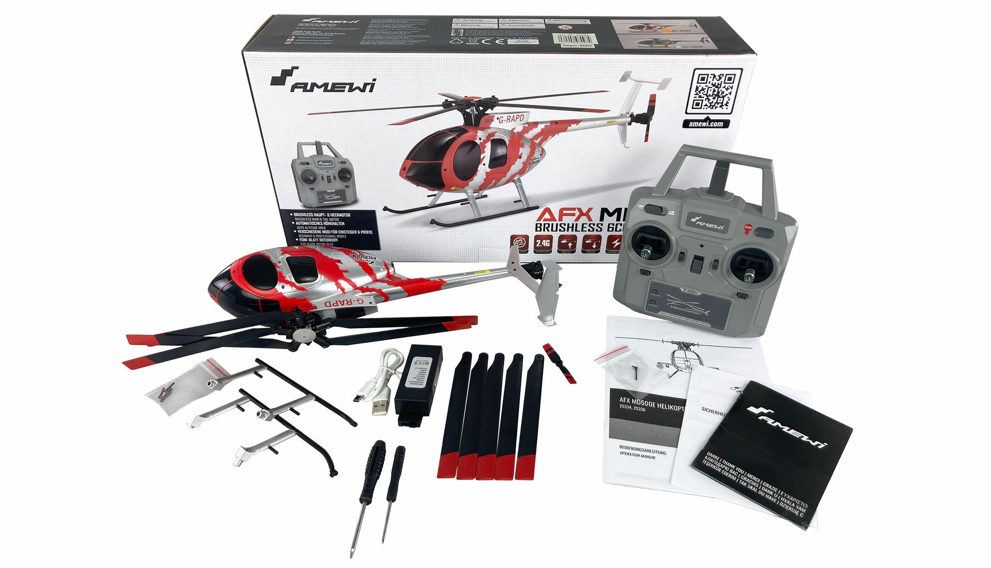 AFX MD500E Zivil Brushless 4-Kanal 325mm Helikopter 6G RTF Red/Silver