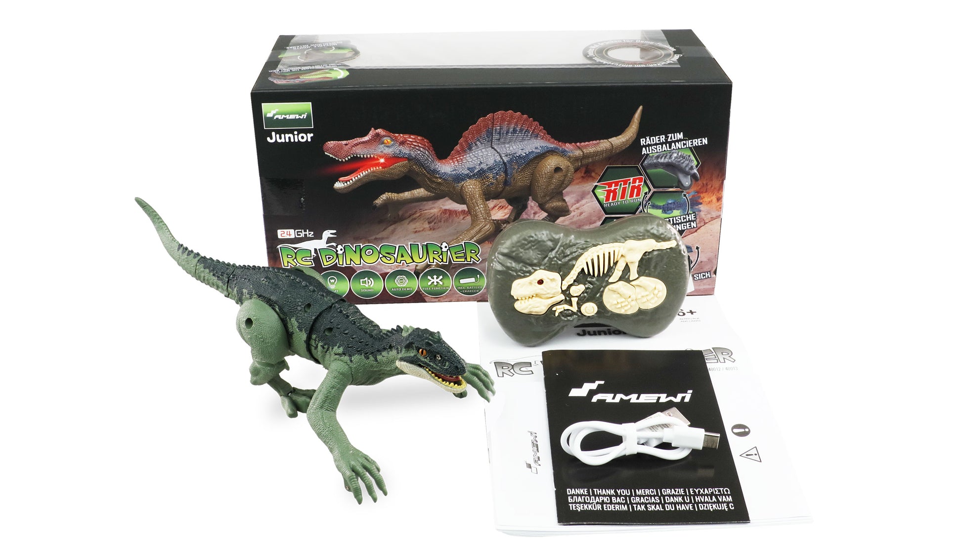 Die Remote Control hat On cooles fossiles Design And ist einfach For Kinder To bedienen. Sie ermöglicht auch On reibungsloses Spielen With mehreren Dinosauriern gleichzeitig. Als Ready-to-Run-Version wird der Spielzeug-Dino geliefert And enthält bereits alles, was For die Inbetriebnahme benötigt wird, außer den handelsüblichen Batterien For die Fernbedienung. Lade einfach den integrierten Battery im Modell Fast With dem USB-Cable On, And schon kann der Spaß beginnen. Zum Leben erweckt wird der Tyrannosaurus per Knopfdruck, der sich On dem Kopf befindet.